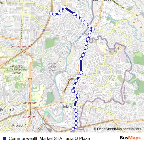 The first stop of the Commonwealth Market STA Lucia Q Plaza bus route is Batasan Road / Commonwealth Avenue Intersection, Quezon City and the last stop is Marcos Hwy, Antipolo City, Manila. Commonwealth Market STA Lucia Q Plaza (Commonwealth Market STA Lucia Q Plaza) is operational during everyday.