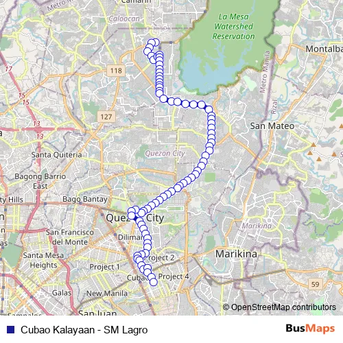 Cubao Kalayaan - SM Lagro bus Route Map