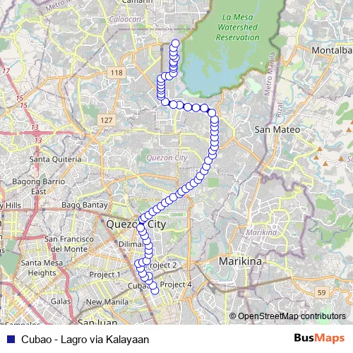 Cubao - Lagro via Kalayaan bus Route Map
