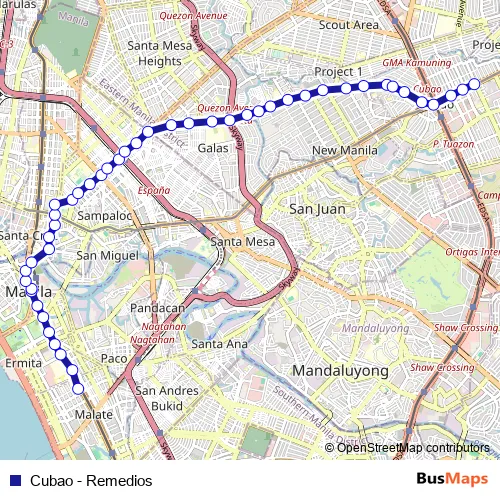 See why over 2 million users trust and consider busmaps.com as the best public transport website. busmaps gives you Manila Buses suggested routes, real-time bus tracker, line route maps in Manila, and helps to find the closest Cubao - Remedios bus stops near you. No internet available? Download an offline PDF map and bus schedule for the Cubao - Remedios bus to take on your trip.