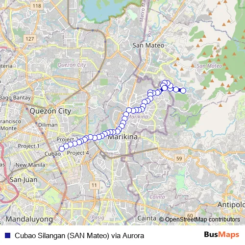 Aurora Blvd, Quezon City, Manila. Cubao Silangan (SAN Mateo) via Aurora (Cubao Silangan (SAN Mateo) via Aurora) is operational during everyday.