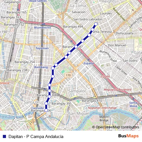 See why over 2 million users trust and consider busmaps.com as the best public transport website. busmaps gives you Manila Buses suggested routes, real-time bus tracker, line route maps in Manila, and helps to find the closest Dapitan - P Campa Andalucia bus stops near you. No internet available? Download an offline PDF map and bus schedule for the Dapitan - P Campa Andalucia bus to take on your trip.