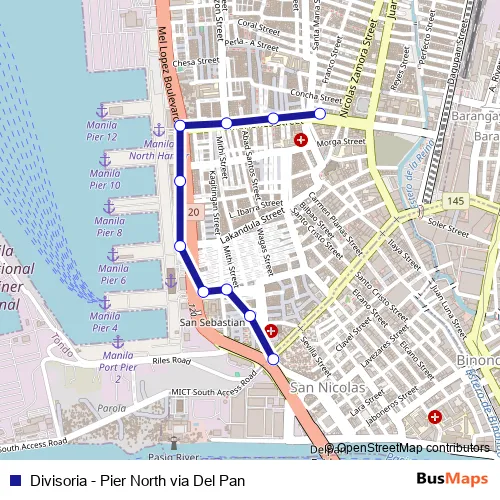 Divisoria - Pier North via Del Pan bus Route Map