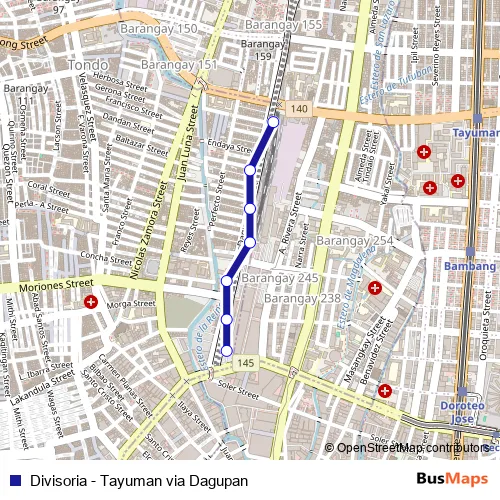 See why over 2 million users trust and consider busmaps.com as the best public transport website. busmaps gives you Manila Buses suggested routes, real-time bus tracker, line route maps in Manila, and helps to find the closest Divisoria - Tayuman via Dagupan bus stops near you. No internet available? Download an offline PDF map and bus schedule for the Divisoria - Tayuman via Dagupan bus to take on your trip.
