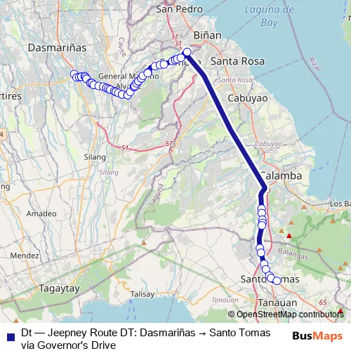 Click here to view the nearest Dt - Jeepney Route DT: Dasmariñas → Santo Tomas via Governor's Drive bus stop.