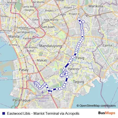 Additional information: Eastwood Libis - Marriot Terminal via Acropolis has 65 stops and the total trip duration