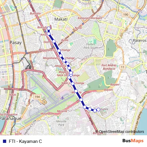 See why over 2 million users trust and consider busmaps.com as the best public transport website. busmaps gives you Makati City Buses suggested routes, real-time bus tracker, line route maps in Makati City, and helps to find the closest FTI - Kayaman C bus stops near you. No internet available? Download an offline PDF map and bus schedule for the FTI - Kayaman C bus to take on your trip.