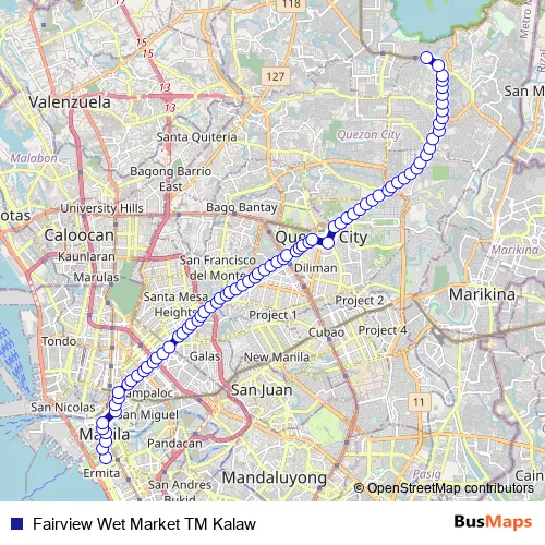 See why over 2 million users trust and consider busmaps.com as the best public transport website. busmaps gives you Quezon City Buses suggested routes, real-time bus tracker, line route maps in Quezon City, and helps to find the closest Fairview Wet Market TM Kalaw bus stops near you. No internet available? Download an offline PDF map and bus schedule for the Fairview Wet Market TM Kalaw bus to take on your trip.