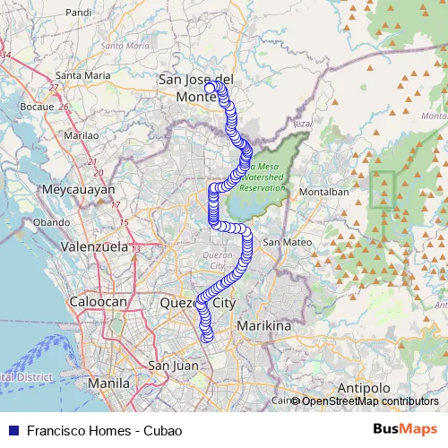 See why over 2 million users trust and consider busmaps.com as the best public transport website. busmaps gives you Quezon City Buses suggested routes, real-time bus tracker, line route maps in Quezon City, and helps to find the closest Francisco Homes - Cubao bus stops near you. No internet available? Download an offline PDF map and bus schedule for the Francisco Homes - Cubao bus to take on your trip.