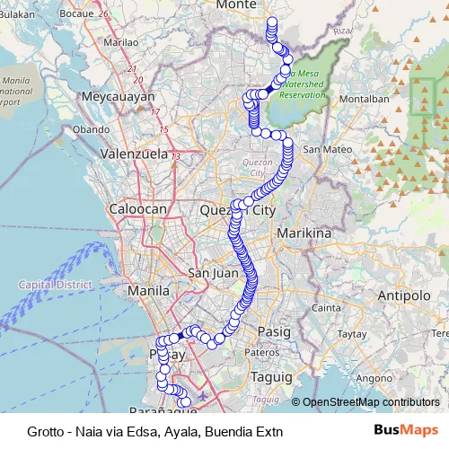 Grotto - Naia via Edsa, Ayala, Buendia Extn bus Route Map