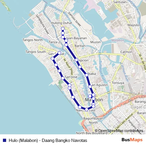 Additional information: Hulo (Malabon) - Daang Bangko Navotas has 24 stops and the total trip duration for this route is approximately 26 minutes.
