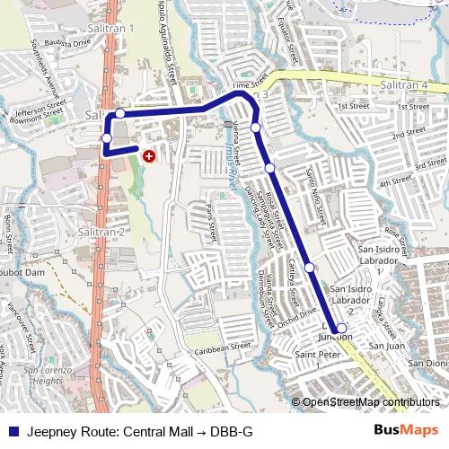 The first stop of the Jeepney Route: Central Mall → DBB-G bus route is Salitran/Central Mall and the last stop is DBB-G. Jeepney Route: Central Mall → DBB-G (Jeepney Route: Central Mall → DBB-G) is operational during everyday.