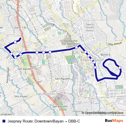 See why over 2 million users trust and consider busmaps.com as the best public transport website. busmaps gives you Dasmarinas Buses suggested routes, real-time bus tracker, line route maps in Dasmarinas, and helps to find the closest Jeepney Route: Downtown/Bayan → DBB-C bus stops near you. No internet available? Download an offline PDF map and bus schedule for the Jeepney Route: Downtown/Bayan → DBB-C bus to take on your trip.