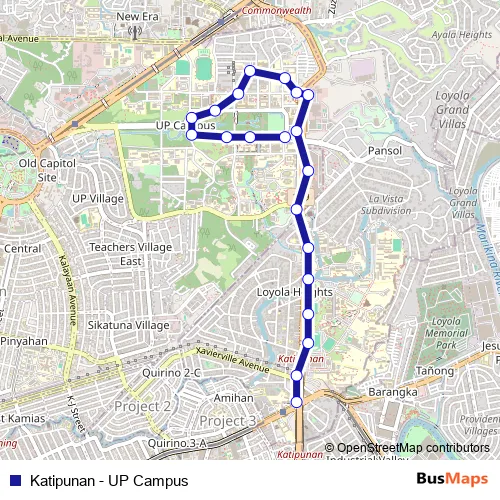 See why over 2 million users trust and consider busmaps.com as the best public transport website. busmaps gives you Quezon City Buses suggested routes, real-time bus tracker, line route maps in Quezon City, and helps to find the closest Katipunan - UP Campus bus stops near you. No internet available? Download an offline PDF map and bus schedule for the Katipunan - UP Campus bus to take on your trip.