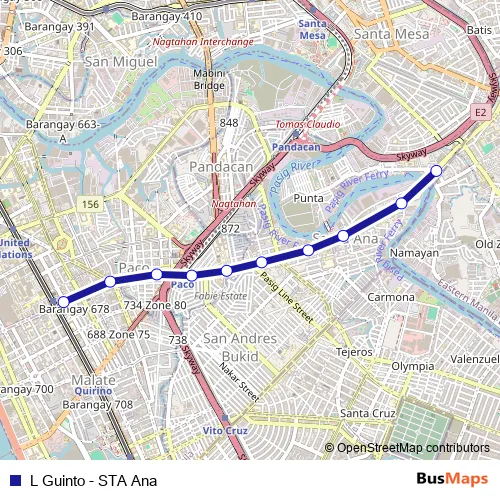 See why over 2 million users trust and consider busmaps.com as the best public transport website. busmaps gives you Manila Buses suggested routes, real-time bus tracker, line route maps in Manila, and helps to find the closest L Guinto - STA Ana bus stops near you. No internet available? Download an offline PDF map and bus schedule for the L Guinto - STA Ana bus to take on your trip.