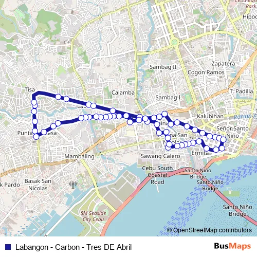 See why over 2 million users trust and consider busmaps.com as the best public transport website. busmaps gives you Cebu City Buses suggested routes, real-time bus tracker, line route maps in Cebu City, and helps to find the closest Labangon - Carbon - Tres DE Abril bus stops near you. No internet available? Download an offline PDF map and bus schedule for the Labangon - Carbon - Tres DE Abril bus to take on your trip.