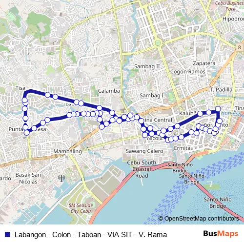 Labangon - Colon - Taboan - VIA SIT - V. Rama bus Route Map