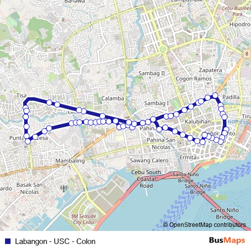 See why over 2 million users trust and consider busmaps.com as the best public transport website. busmaps gives you Cebu City Buses suggested routes, real-time bus tracker, line route maps in Cebu City, and helps to find the closest Labangon - USC - Colon bus stops near you. No internet available? Download an offline PDF map and bus schedule for the Labangon - USC - Colon bus to take on your trip.
