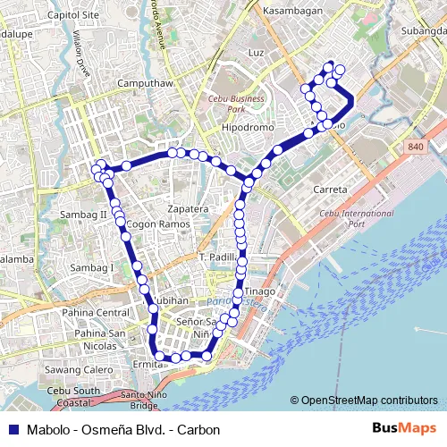 Mabolo - Osmeña Blvd. - Carbon bus Route Map