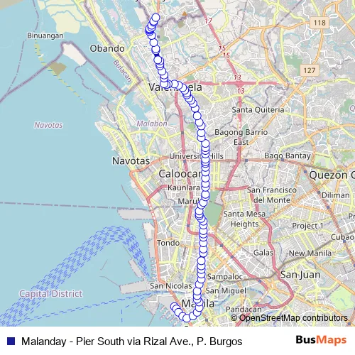 Malanday - Pier South via Rizal Ave., P. Burgos bus Route Map