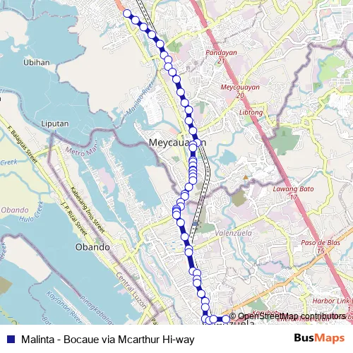 See why over 2 million users trust and consider busmaps.com as the best public transport website. busmaps gives you Meycauayan Buses suggested routes, real-time bus tracker, line route maps in Meycauayan, and helps to find the closest Malinta - Bocaue via Mcarthur Hi-way bus stops near you. No internet available? Download an offline PDF map and bus schedule for the Malinta - Bocaue via Mcarthur Hi-way bus to take on your trip.