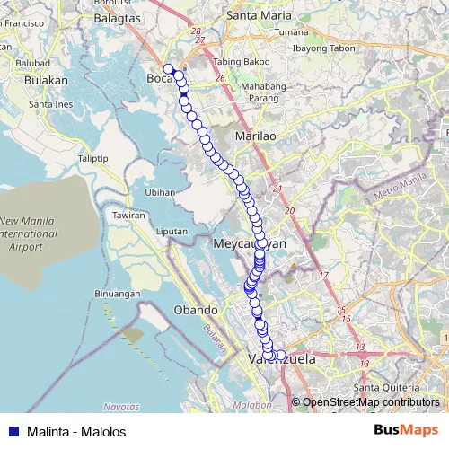 See why over 2 million users trust and consider busmaps.com as the best public transport website. busmaps gives you Meycauayan Buses suggested routes, real-time bus tracker, line route maps in Meycauayan, and helps to find the closest Malinta - Malolos bus stops near you. No internet available? Download an offline PDF map and bus schedule for the Malinta - Malolos bus to take on your trip.