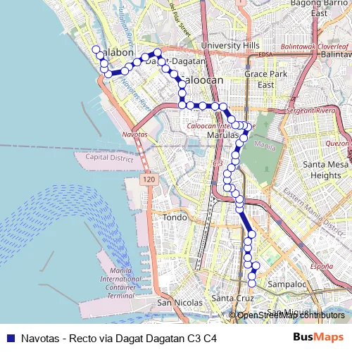 See why over 2 million users trust and consider busmaps.com as the best public transport website. busmaps gives you Manila Buses suggested routes, real-time bus tracker, line route maps in Manila, and helps to find the closest Navotas - Recto via Dagat Dagatan C3 C4 bus stops near you. No internet available? Download an offline PDF map and bus schedule for the Navotas - Recto via Dagat Dagatan C3 C4 bus to take on your trip.
