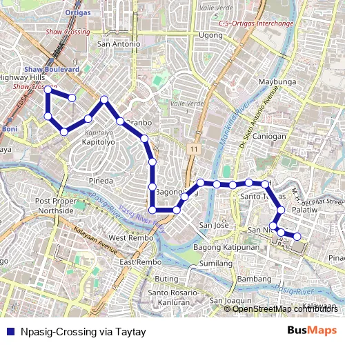 Bus Npasig-Crossing via Taytay in Pasig City: Stops & Timetable