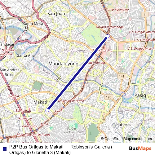 Click here to view the nearest P2P Bus Ortigas to Makati - Robinson's Galleria (Ortigas) to Glorietta 3 (Makati) bus stop.