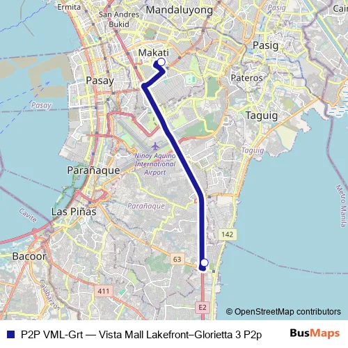 Click here to view the nearest P2P VML-Grt - Vista Mall Lakefront–Glorietta 3 P2p bus stop.