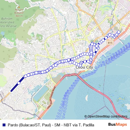 Department of Transportation, Cebu (Dotc) Pardo (Bulacao/ST. Paul) - SM - NBT via T. Padilla bus Route Map