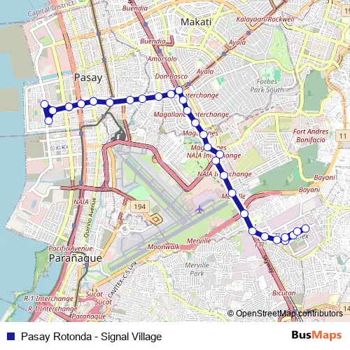 Pasay Rotonda - Signal Village bus Route Map