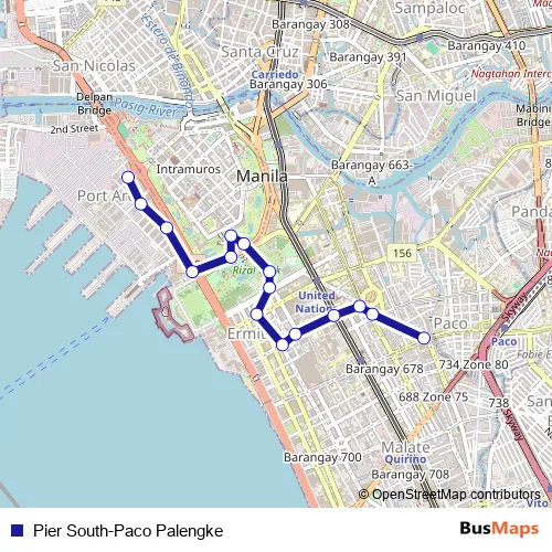 See why over 2 million users trust and consider busmaps.com as the best public transport website. busmaps gives you Manila Buses suggested routes, real-time bus tracker, line route maps in Manila, and helps to find the closest Pier South-Paco Palengke bus stops near you. No internet available? Download an offline PDF map and bus schedule for the Pier South-Paco Palengke bus to take on your trip.