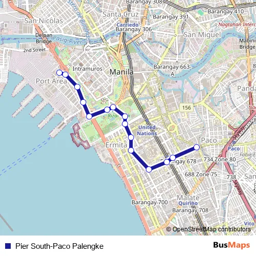 See why over 2 million users trust and consider busmaps.com as the best public transport website. busmaps gives you Manila Buses suggested routes, real-time bus tracker, line route maps in Manila, and helps to find the closest Pier South-Paco Palengke bus stops near you. No internet available? Download an offline PDF map and bus schedule for the Pier South-Paco Palengke bus to take on your trip.