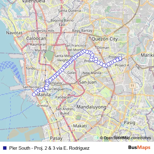 Pier South - Proj. 2 & 3 via E. Rodriguez (Manila Buses)