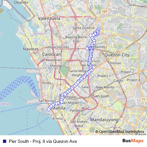 Pier South - Proj. 8 via Quezon Ave bus Route Map