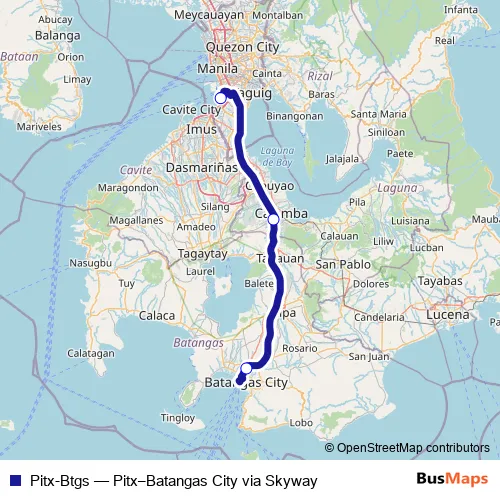 The first stop of the Pitx-Btgs bus route is Pitx Central Luzon, Southern Tagalog, Cavite Nightly City Bus Departures and the last stop is Batangas City Bus Arrivals. Pitx-Btgs (Pitx–Batangas City via Skyway) is operational during everyday.