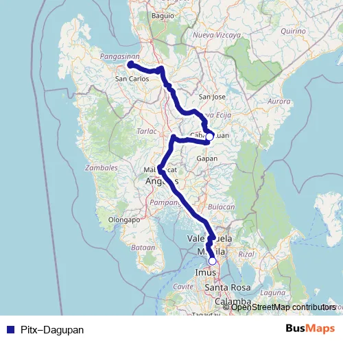 The first stop of the Pitx–Dagupan bus route is Pitx P2P Departures and the last stop is Cabanatuan City Central Terminal. Pitx–Dagupan is operational during everyday.