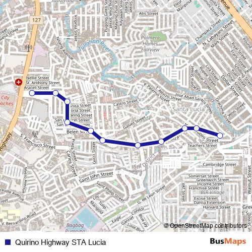 The first stop of the Quirino Highway STA Lucia bus route is Susana, Quezon City and the last stop is R Humabon, Quezon City. Quirino Highway STA Lucia (Quirino Highway STA Lucia) is operational during everyday.
