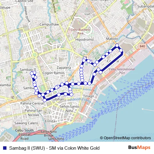 Sambag II (SWU) - SM via Colon White Gold bus Route Map