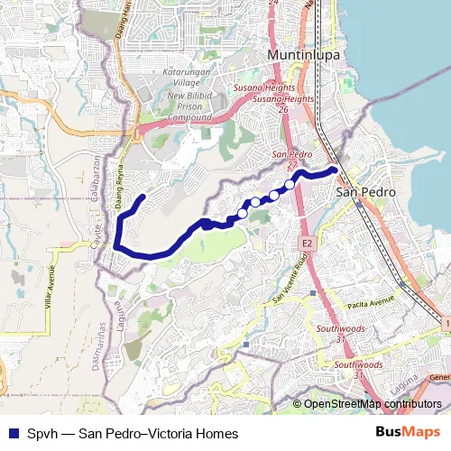The first stop of the Spvh bus route is Sitio Crossing and the last stop is San Pedro Exit. Spvh (San Pedro–Victoria Homes) is operational during everyday.