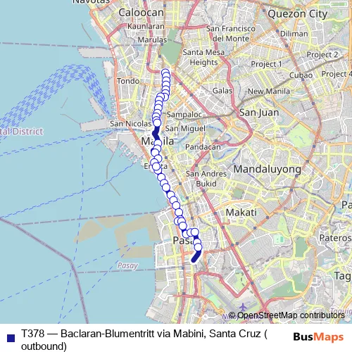 Bus T378 - Baclaran-Blumentritt via Mabini, Santa Cruz (outbound) in Manila: Stops & Timetable
