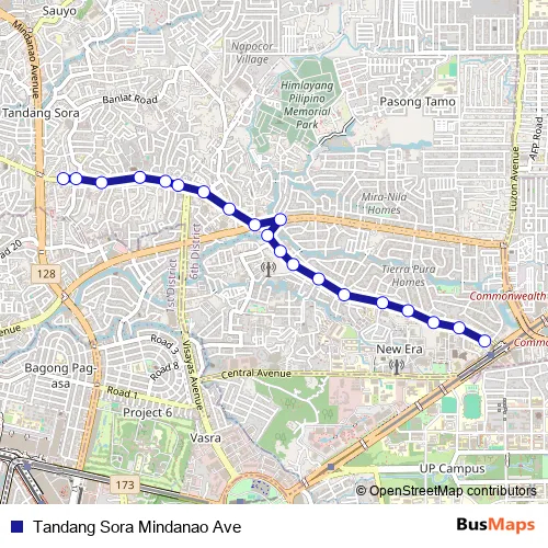 Tandang Sora Mindanao Ave bus Route Map