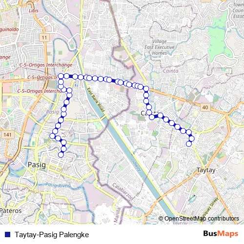 See why over 2 million users trust and consider busmaps.com as the best public transport website. busmaps gives you Pasig City Buses suggested routes, real-time bus tracker, line route maps in Pasig City, and helps to find the closest Taytay-Pasig Palengke bus stops near you. No internet available? Download an offline PDF map and bus schedule for the Taytay-Pasig Palengke bus to take on your trip.