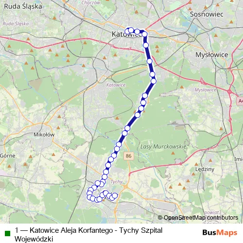 1 Bus - Katowice Aleja Korfantego - Tychy Szpital Wojewódzki