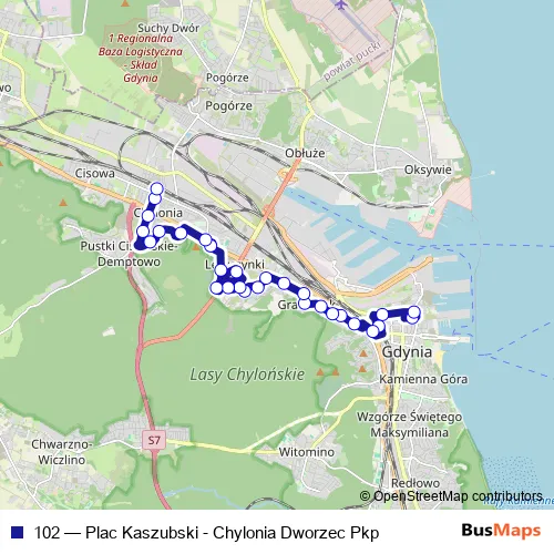 Bus 102 - Plac Kaszubski - Chylonia Dworzec Pkp Schedule in Kosakowo