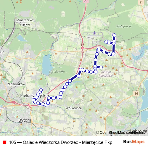 Bus 105 - Osiedle Wieczorka Dworzec - Mierzęcice Pkp: Full Schedule in Mierzecice
