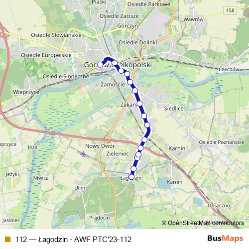 Bus 112 - Łagodzin - AWF PTC'23-112 Schedule in Gorzow Wielkopolski