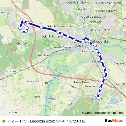 Bus 112 - TPV - Łagodzin przez SP-4 PTC'23-112: Full Schedule in Gorzow Wielkopolski