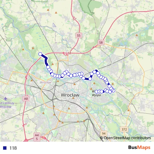 See why over 2 million users trust and consider busmaps.com as the best public transport website. busmaps gives you Wroclaw Buses suggested routes, real-time bus tracker, line route maps in Wroclaw, and helps to find the closest 118 bus stops near you. No internet available? Download an offline PDF map and bus schedule for the 118 bus to take on your trip.